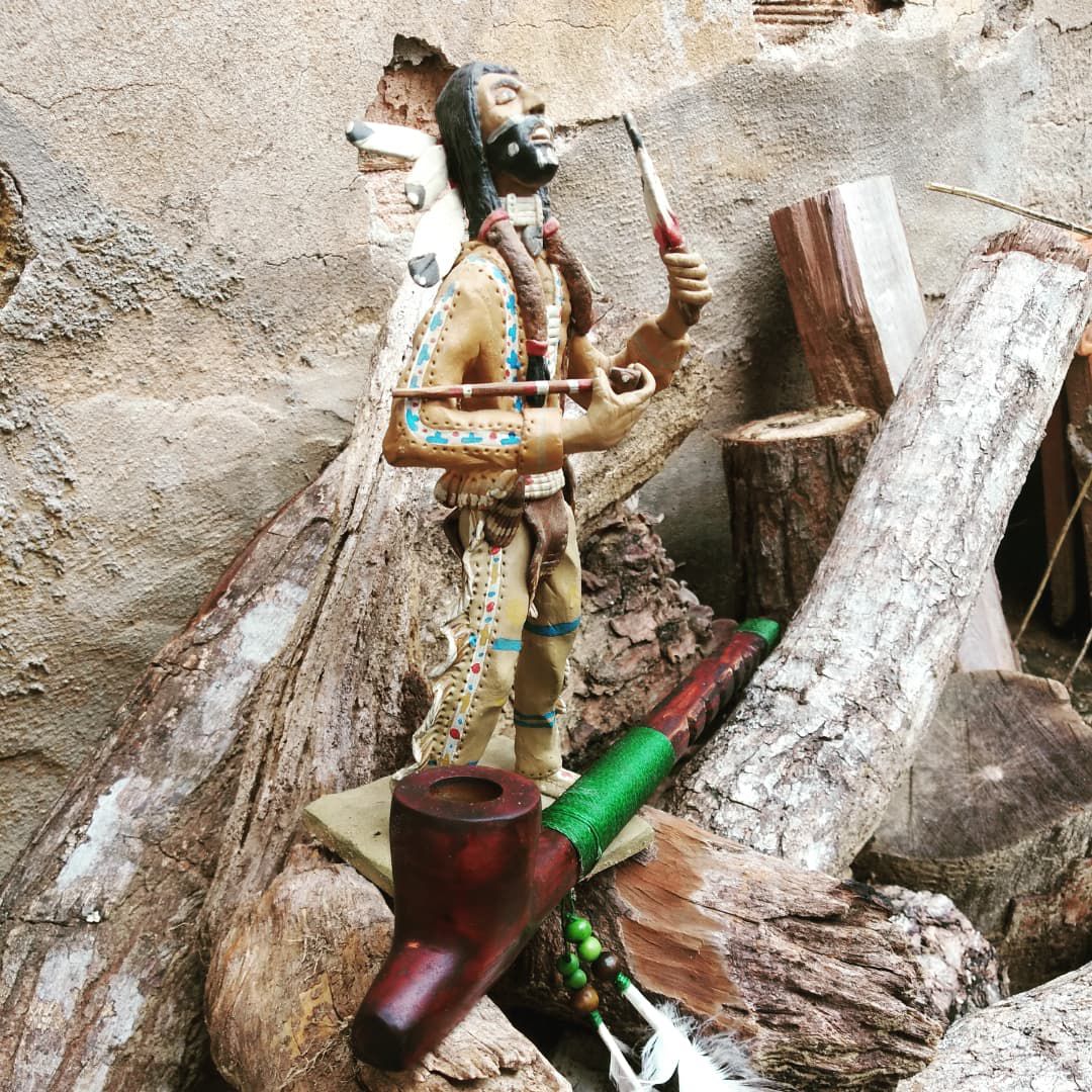 Chanupa Norte Americana feita completamente em madeira. Cachimbo ancestral dos indos Americanos, utilizada em rituais de conexão com o mundo espiritual, atraves do tabaco como planta de poder! Antigamente era escupida em pedra ou madeira, com adornos em peles de animais e penas de aves, trazendo também a conexão com animais de poder.